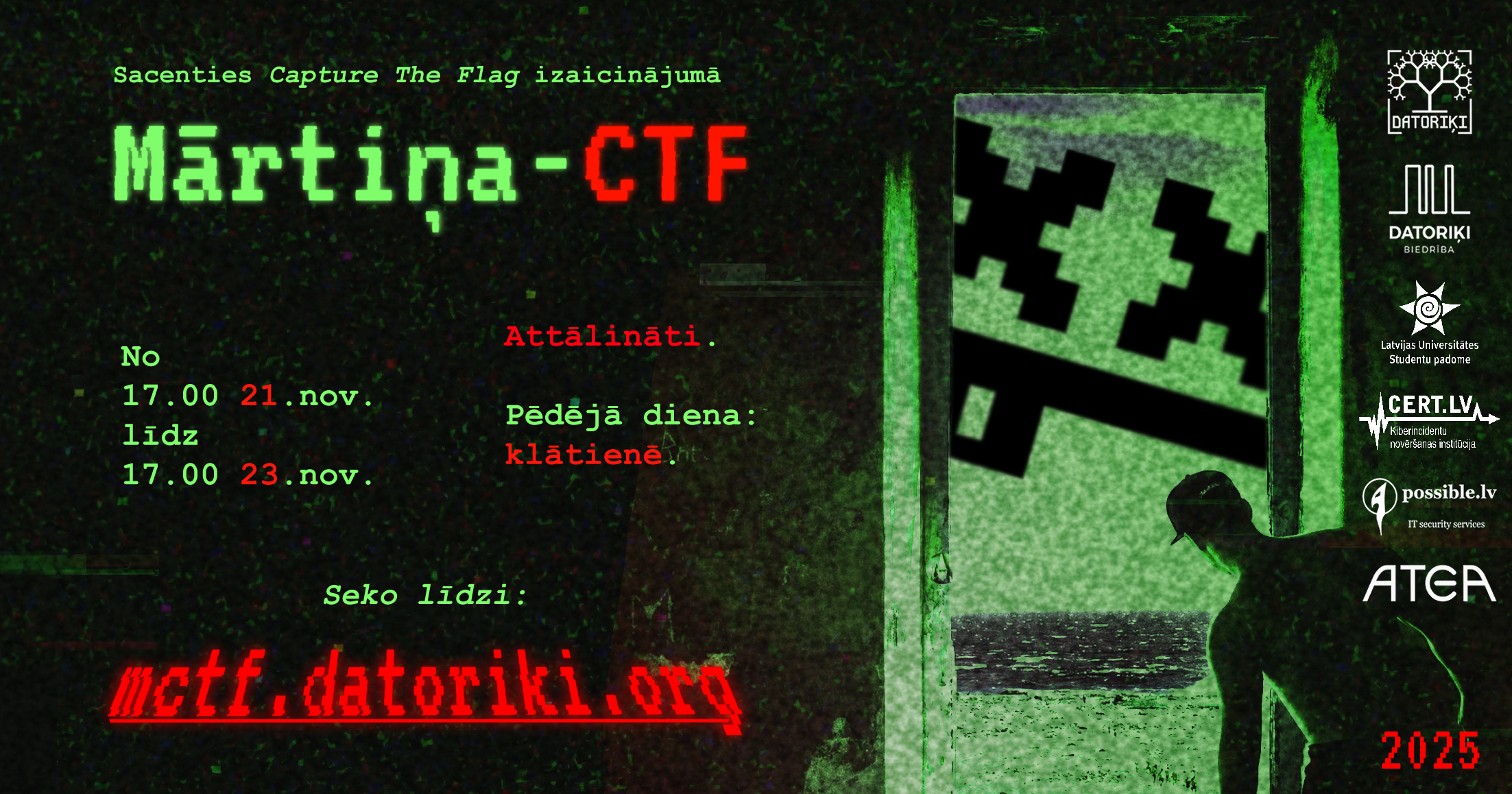 Mārtiņa-CTF ir komandu Capture The Flag (CTF) sacensības, kur dalībnieki risina dažādas drošības, programmēšanas un tehniskās mīklas. Uzdevumu klāstu var pildīt jebkurā secībā un laikā 48 stundu garumā — no 21. novembra plkst. 17.00 līdz 23. novembra plkst. 17.00.
