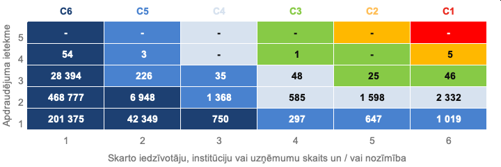 C6 – ikdienas apdraudējumi, ietekmē atsevišķus IT pakalpojumu saņēmējus, nenozīmīga ietekme uz uzņēmumiem vai valsts un pašvaldību iestādēm.