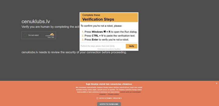 Līdzīgi ClickFix sociālās inženierijas paņēmieni fiksēti arī Latvijā. CERT.LV reģistrēts ziņojums par pikšķerēšanas un ļaunprogrammatūras izplatīšanas mēģinājumu, kas saistīts cenuklubs.lv tīmekļvietni. Šajā gadījumā uzbrukums aktivizējās ar uznirstošu logu, kas parādījās brīdī, kad lietotājs meklēšanas joslā ievadīja vaicājumu un nospieda taustiņu “Enter”. Uzbrukuma mehānisms atkal balstījās uz lietotāja darbību izprovocēšanu, nevis tiešu tehnisku ievainojamību.