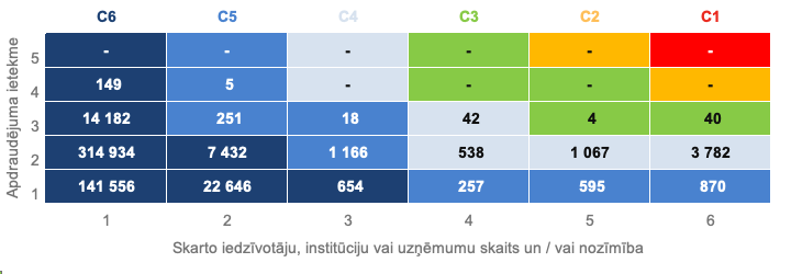 C6 – ikdienas apdraudējumi, ietekmē atsevišķus IT pakalpojumu saņēmējus, nenozīmīga ietekme uz uzņēmumiem vai valsts un pašvaldību iestādēm.